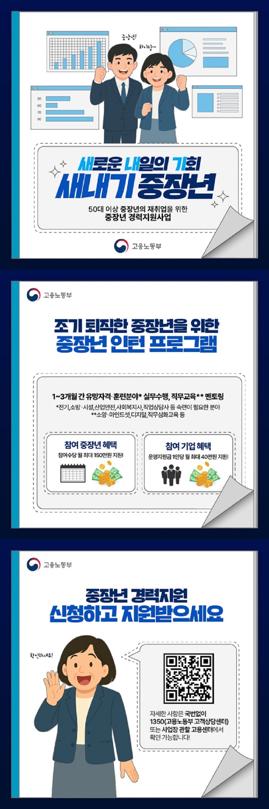 - 기업 지원금: 인턴 운영 도입 기업에는 월 최대 40만 원의 지원금을 제공하여 중장년 채용을 장려합니다.